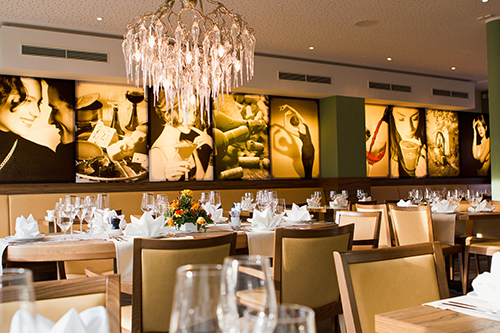In unserem modernen und doch gemütlichen Innenbereich finden Sie ca. 50 Sitzplätze. Je nach Veranstaltung stellen wir unsere Tische individuell zusammen, sodass größere Gruppen bequem Platz finden. Zudem bietet die moderne Raumaufteilung genügend Platz für ein Buffet oder eine Band mit Musikanlagen. Unsere Lichtverhältnisse lassen sich individuell anpassen ganz nach Geschmack und Veranstaltung. Bei schönem Wetter können wir die Terrassentüren vollständig öffnen, sodass ein nahtloser Übergang zum schönen Innenhof möglich ist. Unser Restaurant ist barrierefrei. Unseren Gästen steht eine behindertengerechte Toilette zur Verfügung.
